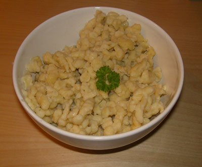 400g Weizenmehl 4 Eier 1 gestr. TL Salz 12 EL Wasser (95 g)