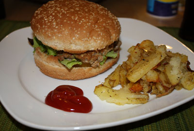 Fleischlaibchen rausbraten mit Käse überbacken. |