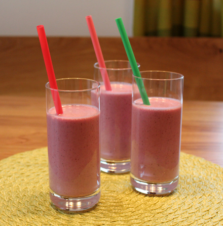 Leinsamen in den Mixtopf geben und bei 3 Sek / Stufe 7 schroten. Beeren zugeben und 10 Sek. / Stufe 8 zerkleinern. |