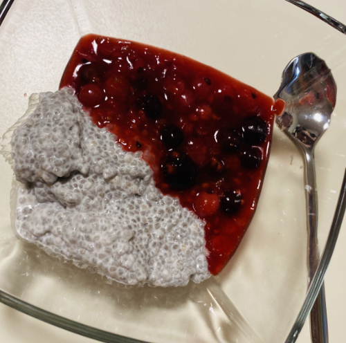 Für den Chia Pudding Kokosmilch, Kokosblütenzucker und Waldfrüchte Teeaufguss in ein verschließbares Glas füllen und durchrühren. Die Chia Samen dazu geben, Deckel schließen und kräftig schütteln. Für mindestens 2 Stunden im Kühlschrank stehen lassen, damit sich die Chia Samen vollsaugen und ein Pudding entsteht. |