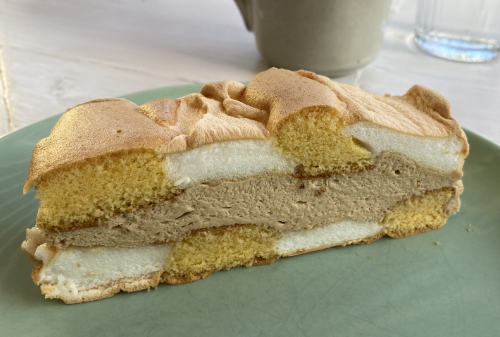 Baiser: 4 Eiklar 100g Erythrit 1 Spritzer Essig Biskuit: 4 Dotter 2 Eier 50g Stauberythrit 40g Mandelmehl 20g Lupinienmehl etwas Zitronenabrieb Creme: 2 Blatt Gelatine 350g Schlagsahne 80g Stevia-Erythrit Mischung (1:1 wie Zucker) optional 1 EL Rum 3-4 TL Löskaffeepulver (2-3 Säckchen)