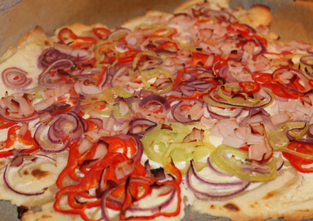 Zutaten zu einem Teig verarbeiten und anschließend beliebig belegen. |