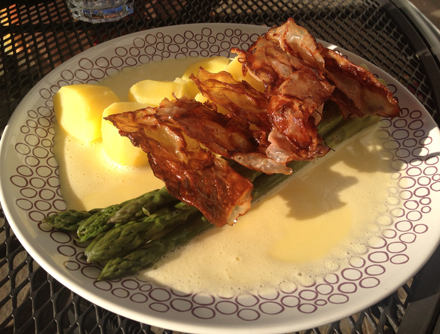 Kartoffeln schälen, je nach Größe vierteln oder halbieren un in den Siebeinsatz legen, Mixtopf mit wasser füllen und etwas salzen. Auf Varoma / Stufe 1 / ca. 10 Minuten garen. Dann den Varoma mit Spargel aufsetzten und noch ca. 10 Minuten dämpfen. Zubereitung: Eventuell einen Schinken in einer Pfanne leicht anbraten und zum Spargel servieren. |