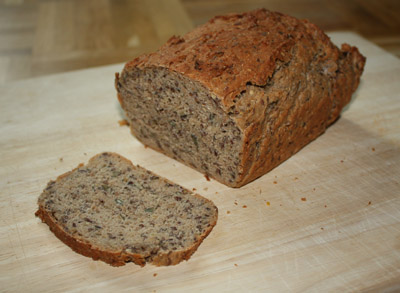 Zubereitung: Alles auf der Teigstufe verkneten, in einer Kastenform ca. 30 min (besser 60 Minuten)gehen lassen und bei 180 °C 60 Minuten (+Schale mit Wasser) backen. |