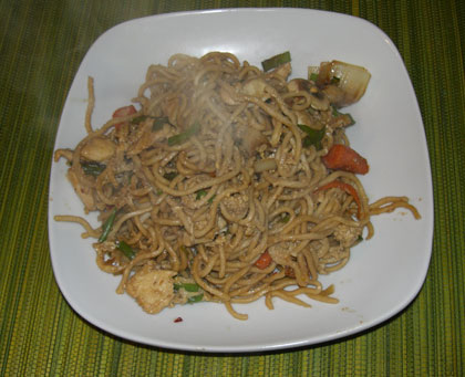 Zubereitung: Gemüse klein schneiden und in der Pfanne andünsten. Gekochte Nudeln dazu geben und mit Ei übergießen. |